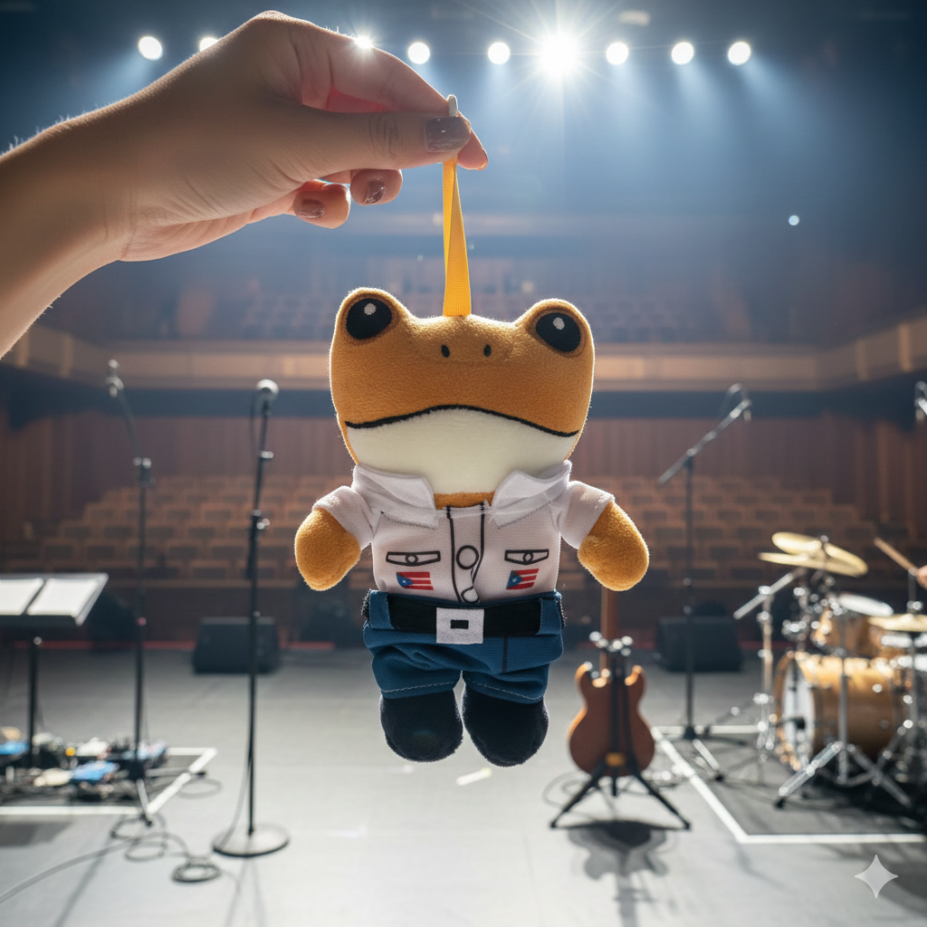El peluche Sapo Concho Músico lleva el ritmo del son, la bomba y la plena en el corazón. Este llavero rinde homenaje a la riqueza musical de Puerto Rico y a los artistas que mantienen viva su identidad cultural.